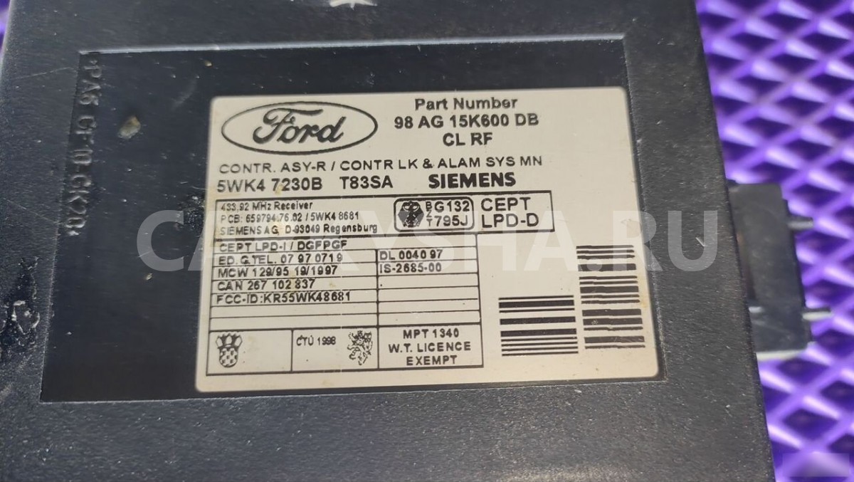 Примечание:Комплект иммобилайзера (ЭБУ) Ford Focus 1.